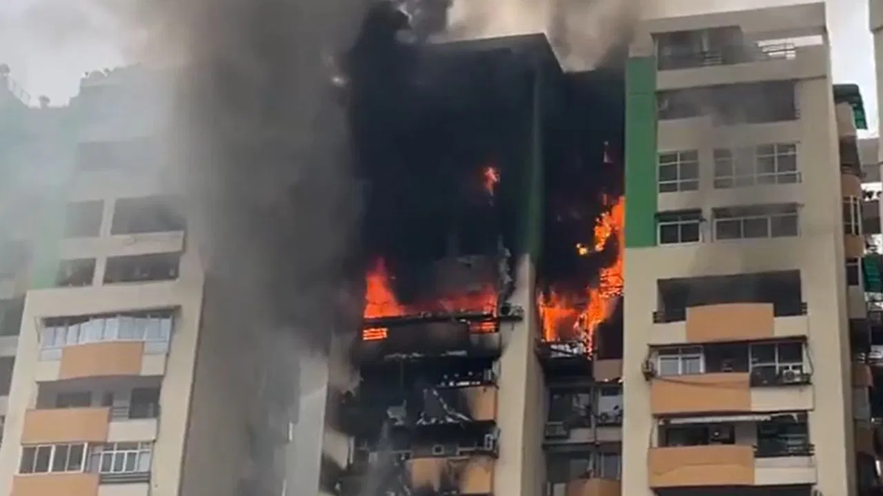 गाजियाबाद की गौर ग्रीन एवेन्यू सोसाइटी की 9वीं मंजिल पर लगी आग। 8 फ्लैट पूरी तरह जले, करोड़ों का नुकसान। दमकल की 20 गाड़ियों ने पाया काबू, बुजुर्गों का सफल रेस्क्यू।