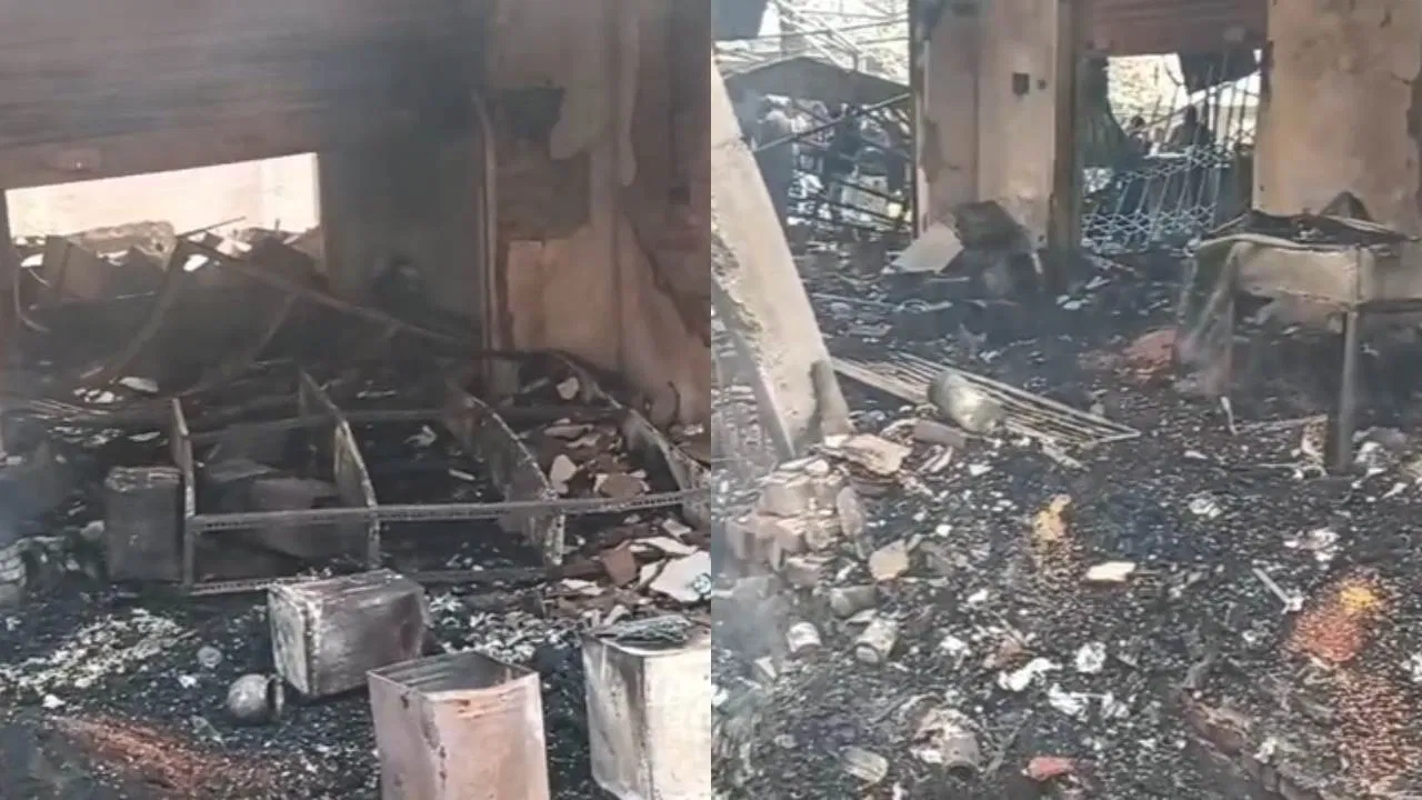 जोरदार धमाके से दहला इलाका: 10 दुकानों में लगी भीषण आग, दूर-दूर तक फैला मलबा; लाखों का सामान जलकर खाक