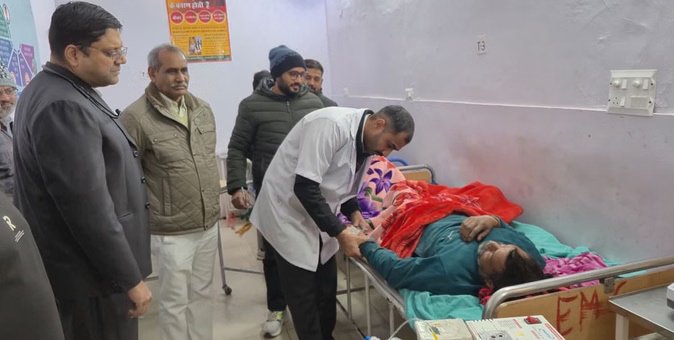 शराब के अधिक सेवन करने से नागरिक अस्पताल में दाखिल लोगों के पास खड़े प्रधान चिकित्सा अधिकारी
