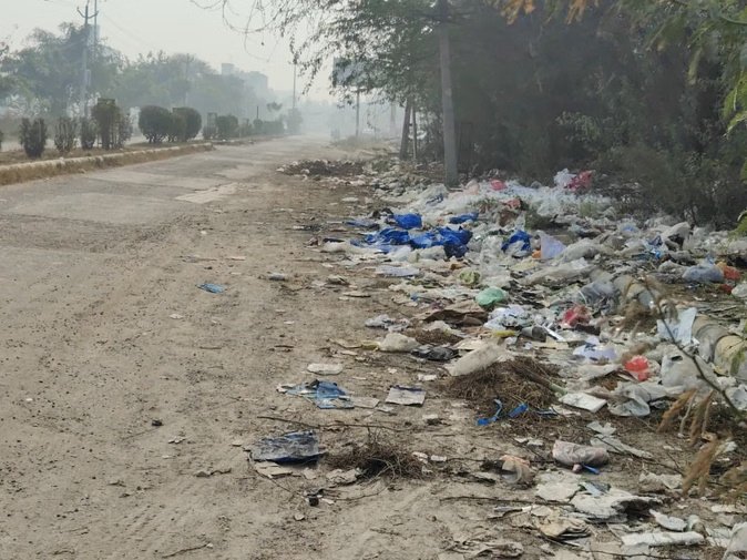शहर में सन सिटी के समीप सड़क किनारे फैला कूड़ा कचरा।