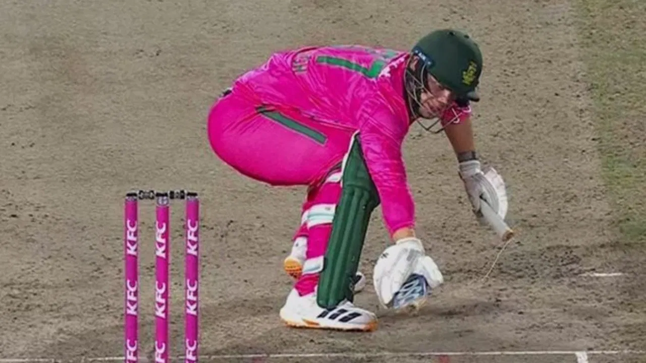 बीच मैदान पर फूटा साउथ अफ्रीका का नसीब! शॉट मारते ही बीच से टूटा बैट और वहीं पलट गया पूरा मैच