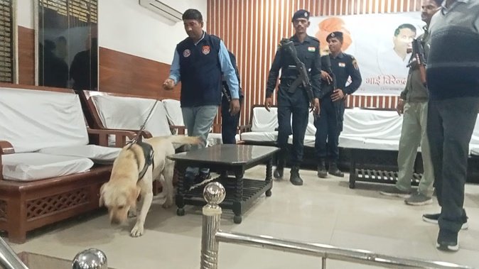 भिवानी में जिला बार सभागार में डॉग स्क्वायड टीम के साथ सर्च अभियान चलाती सुरक्षा एजेंसी।