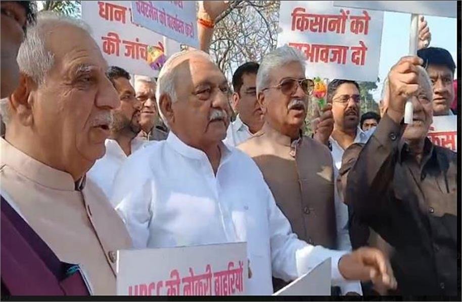 इसी को लेकर आज सत्र से पहले कांग्रेस ने पैदल मार्च शुरू निकाला है। एमएलए हॉस्टल से सभी कांग्रेस विधायक सुबह दस बजे विधानसभा तक पैदल मार्च निकाल कर विधानसभा पहुंचे। इस मार्च का नेतृत्व नेता प्रतिपक्ष भूपेंद्र सिंह हुड्‌डा ने किया।